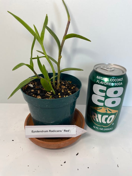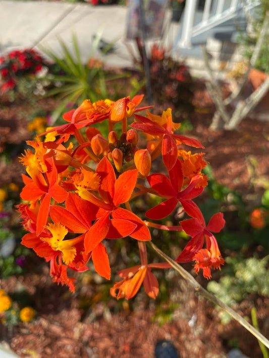 Orange Epidendrum Radicans Ground Orchid in a 4 inch pot. A hardy full sun lover with blooms that butterflies love!