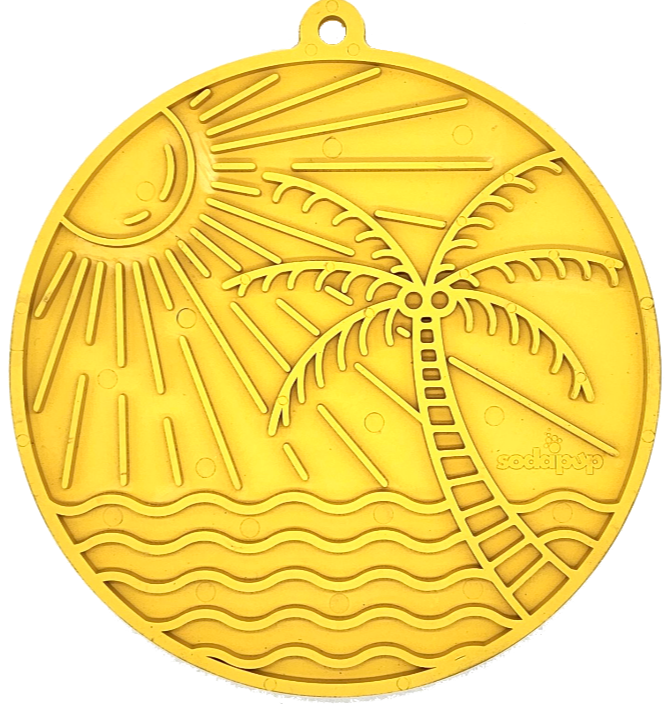 The SodaPup Sun n' Sea eMat is an enrichment lick mat with powerful suction cups designed to provide mental stimulation, anxiety relief, and slow feeding benefits for dogs of all sizes. Made from premium FDA-compliant materials in the USA, this innovative lick mat features a beautiful beach-inspired sun and sea pattern with varied textures that hold treats, peanut butter, yogurt, or wet food, turning snack time into a calming, engaging activity.
