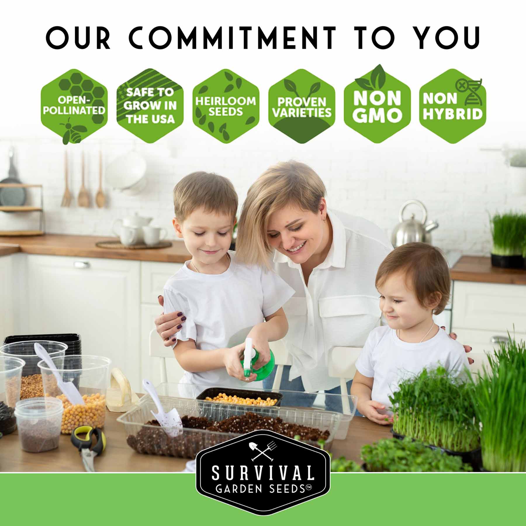 - 5 open-pollinated, untreated, heirloom varieties