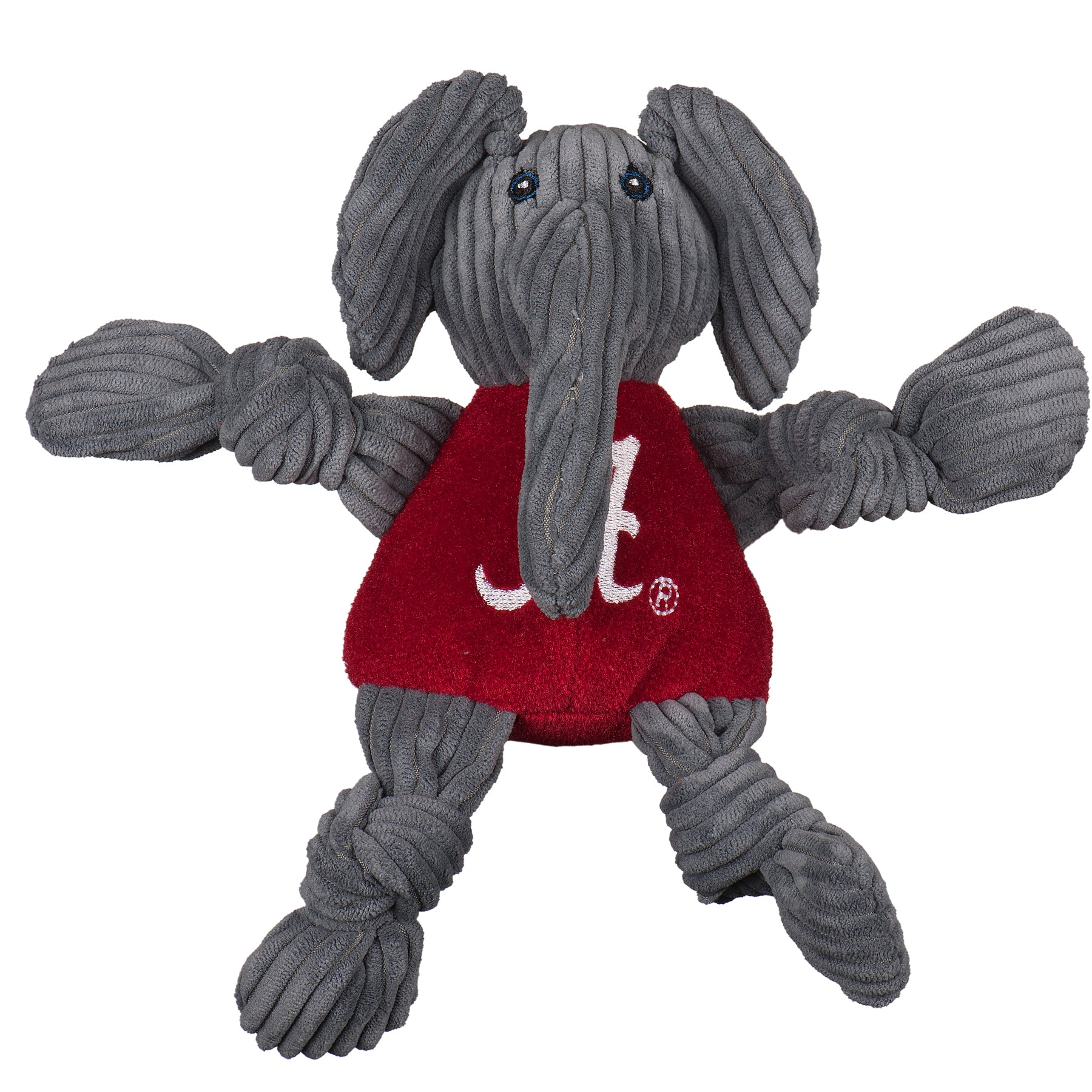 • OFFICIALLY LICENSED COLLEGE MASCOT DOG TOY: Showcase your Alabama spirit with this Big AL Knottie® plush dog toy with knotted limbs and five squeakers.