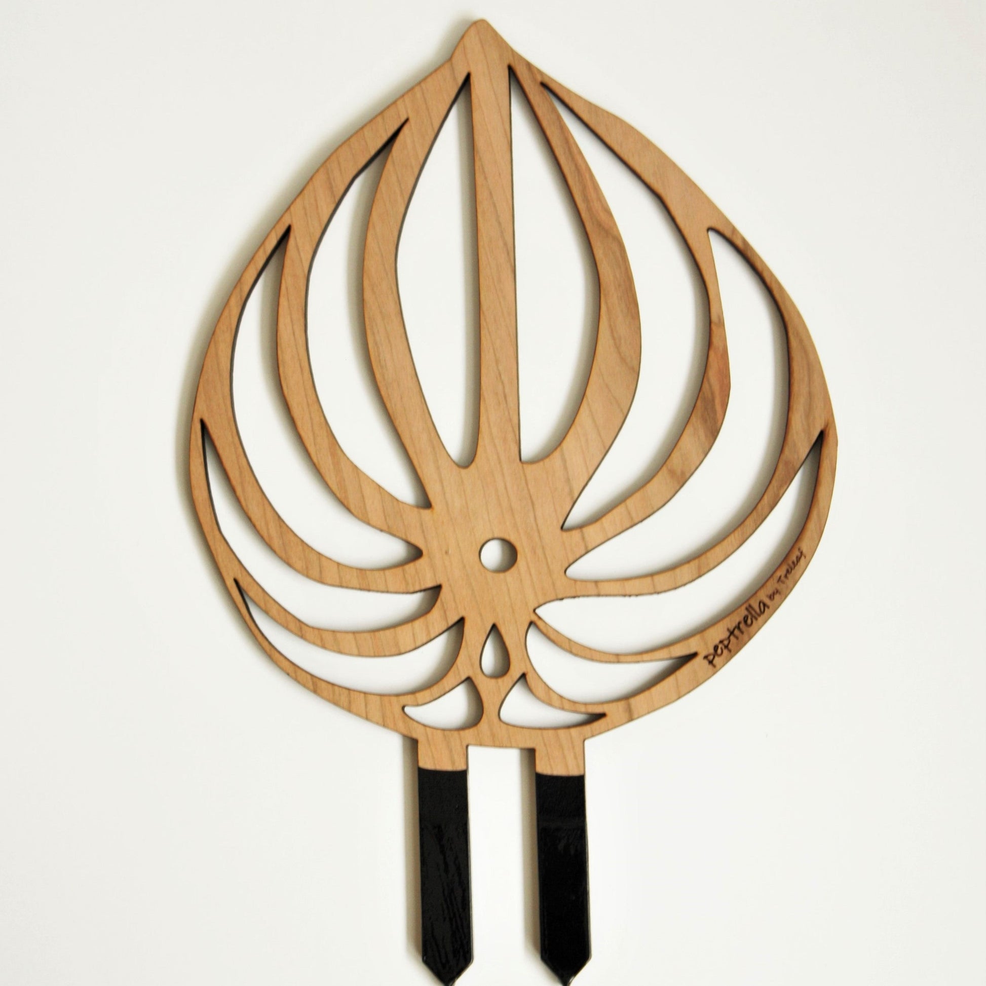 This trellis is specifically designed for Hoyas. This trellis is inspired by the watermelon peperomia leaf. Each trellis is one of a kind with a unique grain structure that is sure to be a statement piece at your home.