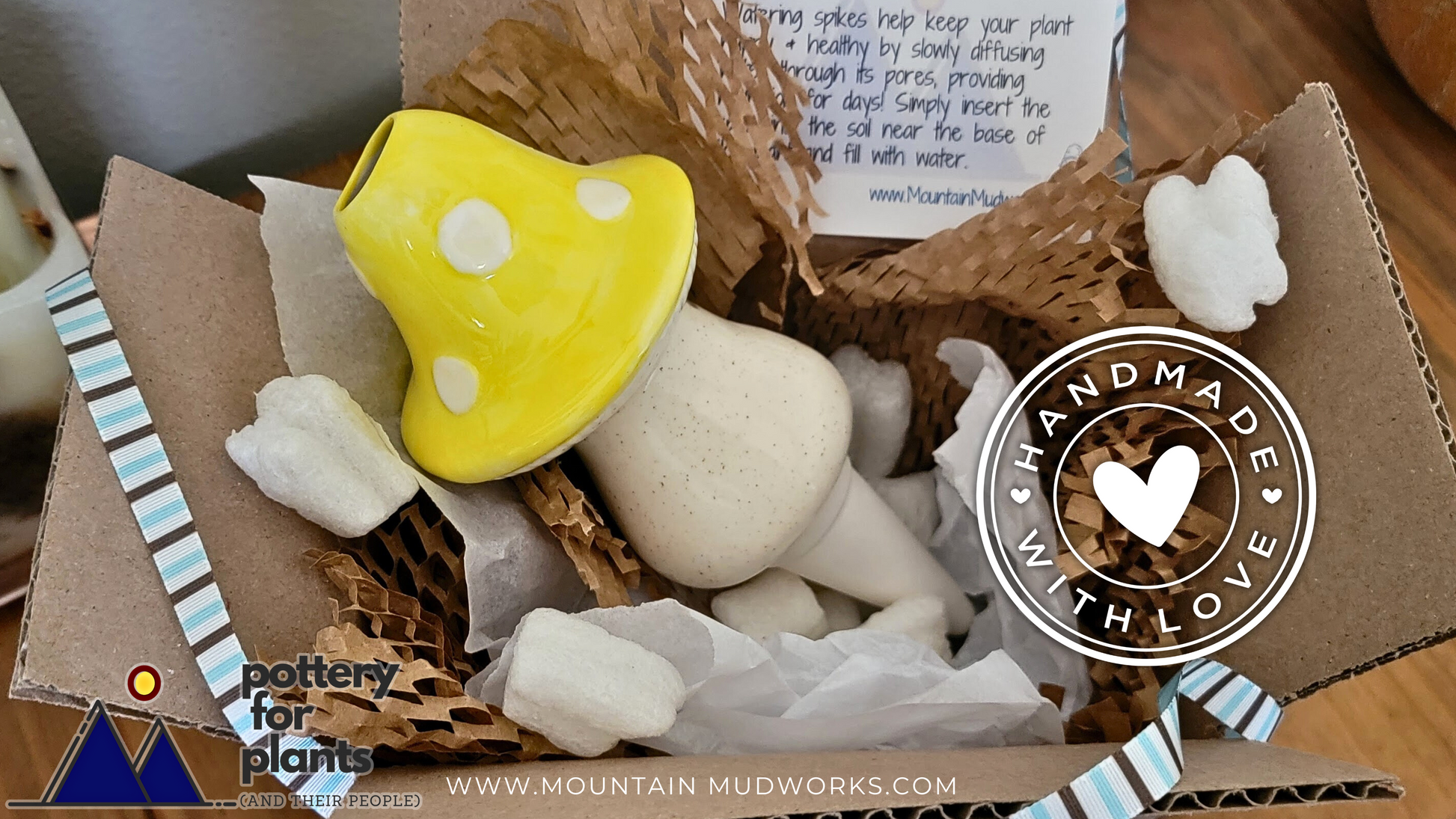 Approximate dimensions: 8 inches tall (including 2.75-inch spike) x mushroom cap is 3.5 inches wide x stem is 2.5 inches wide. Holds 10oz of water.